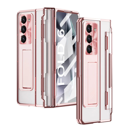 Electroplating Transparent Hard Case with Bracket & Screen Protector For Z Fold Series
